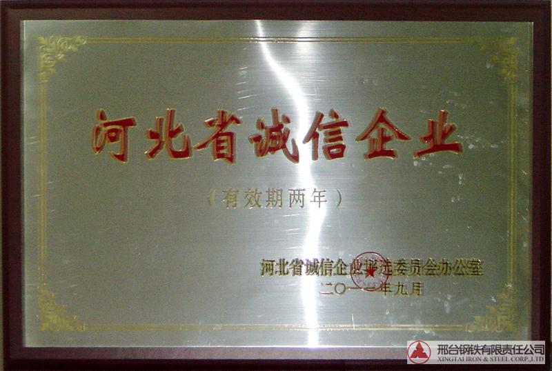 2011年9月,邢鋼被評(píng)選為“河北省誠信企業(yè)”。