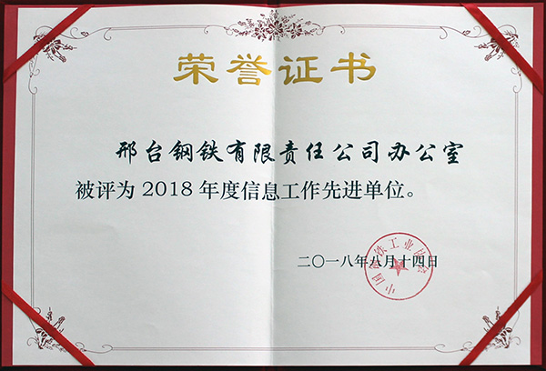 2018年10月22日,在上海舉辦的“2018年Mysteel中國工業(yè)線材暨緊固件產(chǎn)業(yè)鏈高峰論壇”上,論壇評委會根據(jù)對國內(nèi)工業(yè)線材生產(chǎn)鋼廠2017-2018年品牌、質(zhì)量和市場反饋等評比,評選出“中國工業(yè)線材行業(yè)鋼廠領(lǐng)導(dǎo)品牌”,邢鋼獲此殊榮。