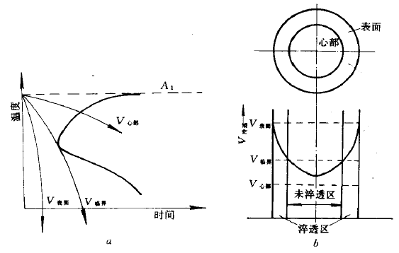 a-工件斷面不同冷速;b-未淬透區(qū)