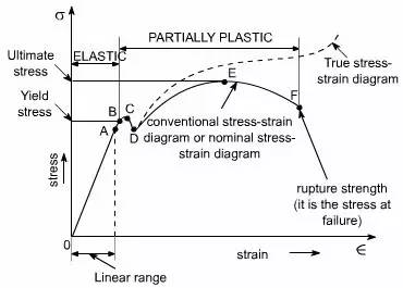 對(duì)于可以發(fā)生拉伸塑性變形的材料,最常用的有兩類(lèi)曲線(xiàn):工程應(yīng)力-工程應(yīng)變曲線(xiàn)和真應(yīng)力-真應(yīng)變曲線(xiàn)。它們的區(qū)別在于計(jì)算應(yīng)力時(shí)采用的面積不同,前者用樣品的初始面積,后者用拉伸過(guò)程中的實(shí)時(shí)橫截面積。因此,在應(yīng)力-應(yīng)變曲線(xiàn)上,真應(yīng)力一般比工程應(yīng)力高。