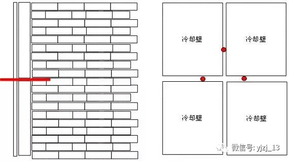 由于砌筑或生產(chǎn)過程中的熱膨脹現(xiàn)象,會(huì)在爐皮與冷卻壁間以及冷卻壁與爐缸炭磚之間產(chǎn)生氣塞,尤其在冷卻壁與炭磚之間的氣塞,會(huì)嚴(yán)重降低冷卻效率,致使炭磚熱面外擴(kuò),熔蝕加快。換角度說:只有消除氣塞,冷卻系統(tǒng)才會(huì)發(fā)生作用,將熱量傳遞出來,利于爐缸內(nèi)形成渣鐵保護(hù)層,促進(jìn)爐缸的安全長(zhǎng)壽。