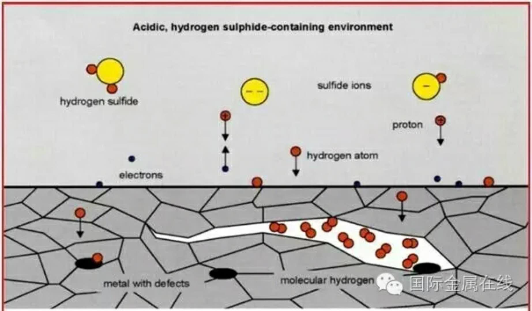 如鋼在含氫量較高的環(huán)境中,如水、酸、氫氣中時(shí),氫通過吸附在鋼鐵表而擴(kuò)散,造成鋼變脆。同時(shí)氫分壓對(duì)氫裂紋擴(kuò)展速度有明顯的影響,提高氫氣壓力會(huì)增加氫脆敏感性。