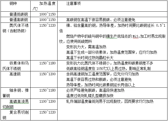 特別注意的是:對(duì)于碳鋼加熱溫度一般不能大于1300℃,大于此溫度,其一,鋼坯表面的氧化鐵皮會(huì)熔化(純氧化鐵皮的熔點(diǎn)為1377~1565℃,含有雜質(zhì)時(shí)降到1300~1350℃),從鋼表面上掉下來,露出新的表面,燒損迅速增加。其二,當(dāng)加熱溫度大于1300℃時(shí),鋼坯很有可能會(huì)出現(xiàn)過熱或過燒。生產(chǎn)其它鋼種時(shí)更應(yīng)該注意最高加熱溫度。