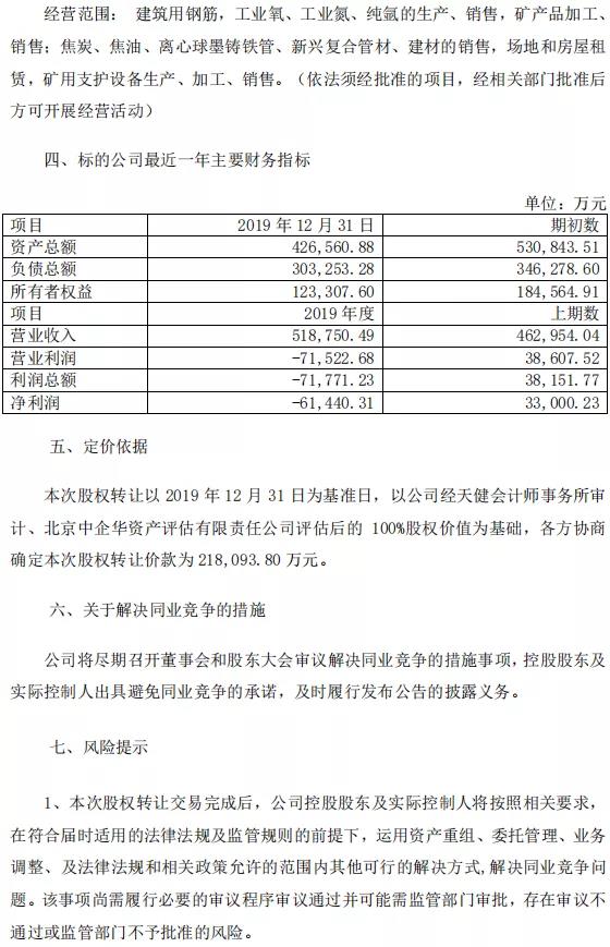 新興鑄管新疆有限公司2010年成立,注冊資本15億元。2019年,該公司實(shí)現(xiàn)營業(yè)收入51.88億元,凈利潤-6.14億元。