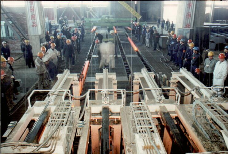 圖為第一臺(tái)煉鋼連鑄機(jī)投產(chǎn)的情景。邢鋼人迎難而上,克服資金,技術(shù)等困難,群策群力,邊干邊學(xué),鑄造出“干成事”的精神,這也是第二代邢鋼人—煉鋼人的寫照。