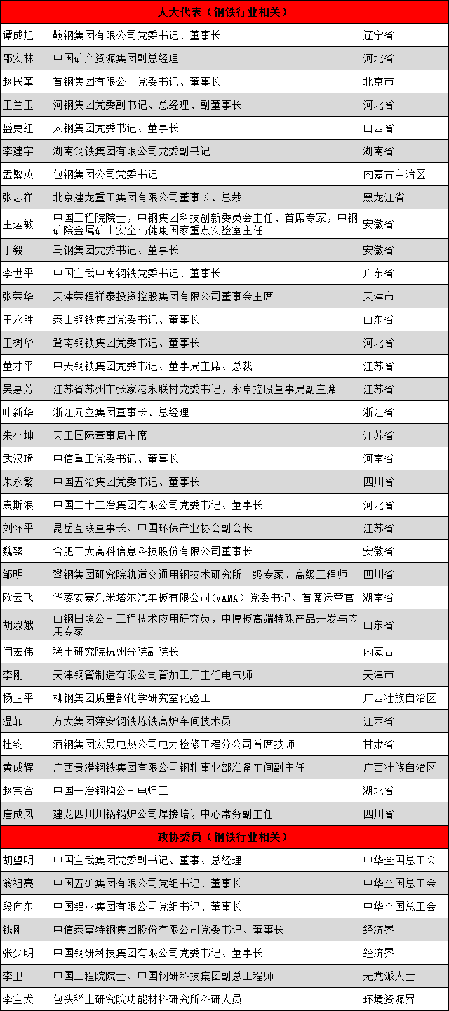 兩會(huì)鋼鐵代表、委員名單