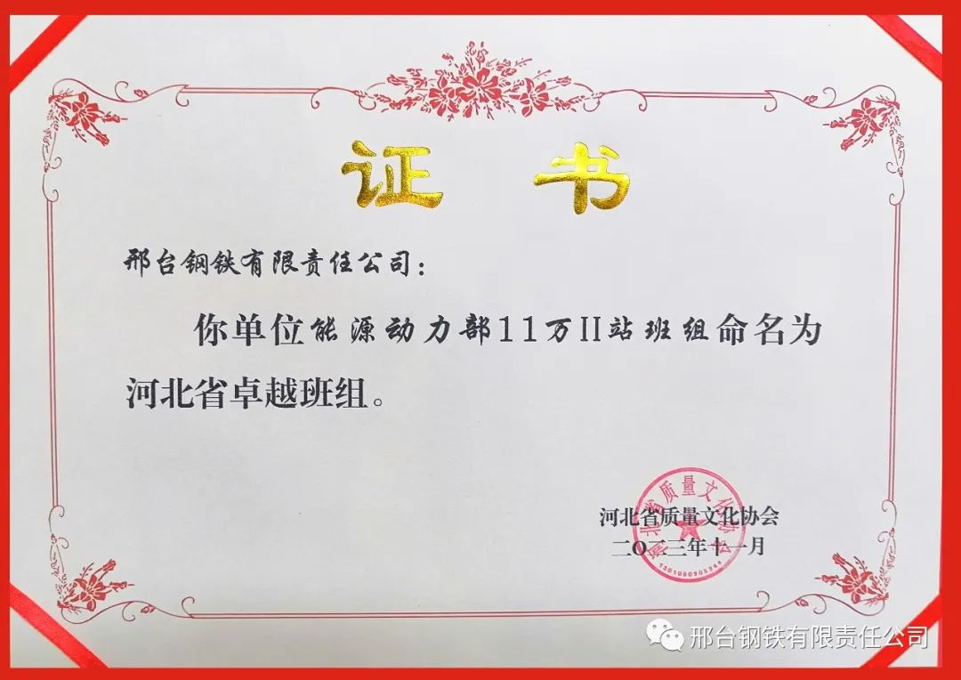 從近日召開的河北省第七屆卓越班組代表會(huì)暨經(jīng)驗(yàn)交流會(huì)上獲悉,邢鋼班組建設(shè)成績典型做法和成功經(jīng)驗(yàn),得到現(xiàn)場評審專家的一致認(rèn)可和高度評價(jià)。經(jīng)最終評審,邢鋼能源動(dòng)力部11萬Ⅱ站榮獲“2023年度河北省卓越班組”稱號;焦化廠備煤甲班班組、煉鋼廠連鑄維修電氣班、線材廠精品五線乙班班組等3個(gè)班組榮獲“2023年度河北省卓越班組建設(shè)先進(jìn)班組”稱號。