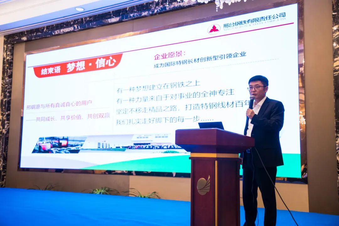 期間,邢鋼總經(jīng)理彭世丹作了《新規(guī)劃引領新未來,新邢鋼再鑄新輝煌》報告,邢鋼董事長助理、總工程師田新中作了《緊固件用鋼的開發(fā)和質(zhì)量控制技術》報告。浙江國檢檢測技術公司副總經(jīng)理王慧、晉億公司質(zhì)量技術部經(jīng)理張勇、中化創(chuàng)新研究院雙碳咨詢事業(yè)部總經(jīng)理劉通、上善院研發(fā)工程師楊現(xiàn)亮、南京工程學院教授趙秀明、上海納特汽車標準件公司研發(fā)總監(jiān)李軍正分別進行了行業(yè)技術報告分享。