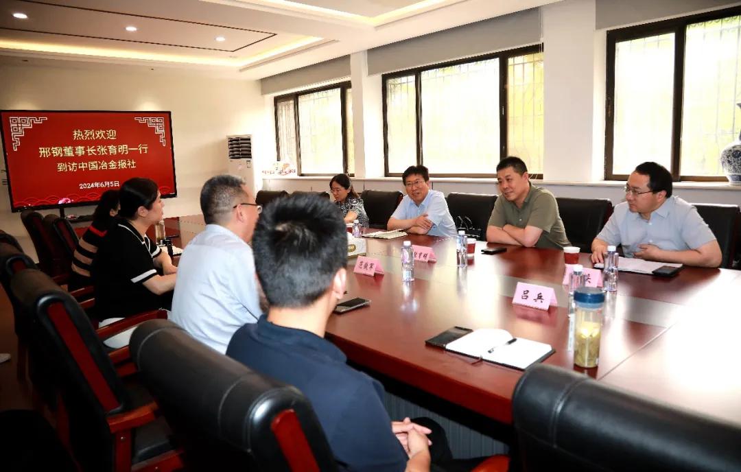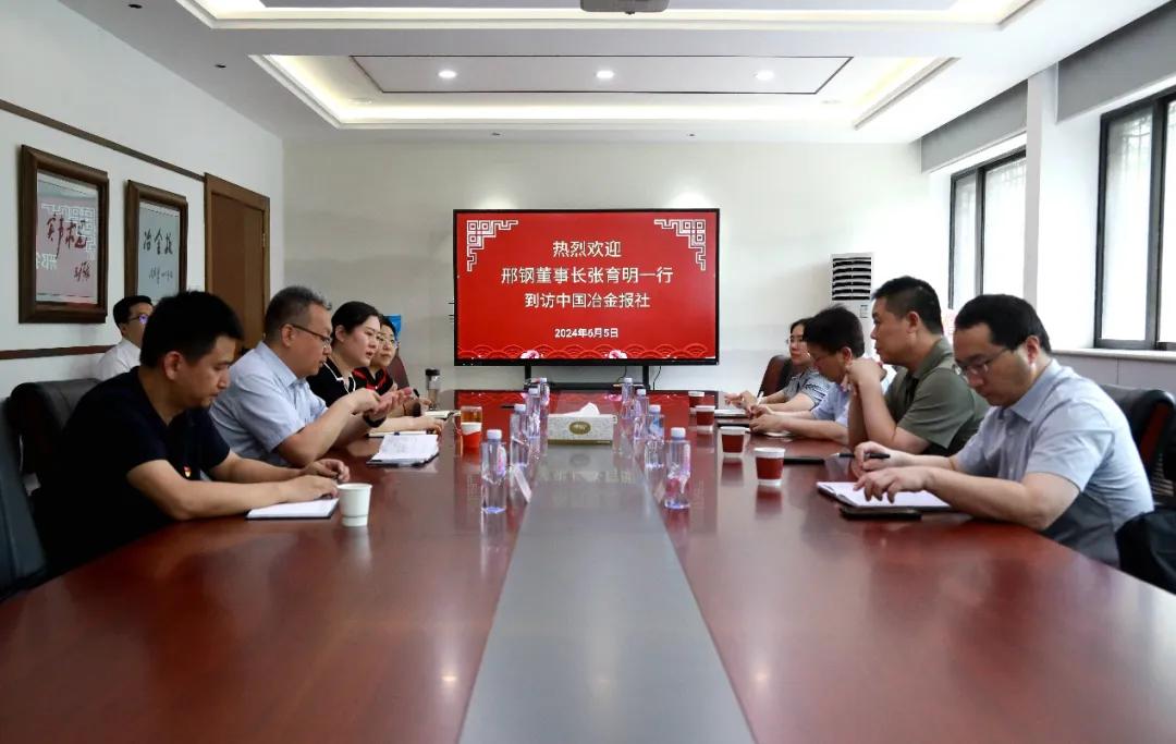 6月5日下午,邢臺(tái)鋼鐵有限責(zé)任公司董事長(zhǎng)張育明一行到訪中國(guó)冶金報(bào)社,中國(guó)鋼鐵工業(yè)協(xié)會(huì)副秘書長(zhǎng),中國(guó)冶金報(bào)社黨委書記、社長(zhǎng)范鐵軍熱情歡迎張育明一行的到來,雙方進(jìn)行了座談交流。