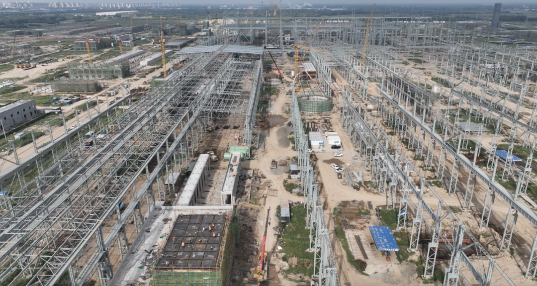 工程車來回穿梭的車轍印、大型機械的轟鳴聲、矗立的鋼結構和封頂?shù)慕ㄖ黧w、塔吊揮舞著長臂加緊為建設者運送物資……日前,位于威縣高新區(qū)的邢臺鋼鐵有限責任公司搬遷升級項目(以下簡稱“邢鋼搬遷升級項目”)正在有序緊張施工中,2000余名工人分布在各個作業(yè)面,項目已全面進入地上鋼結構及主線設備基礎施工階段,項目一期預計今年年底建成投產(chǎn)。
