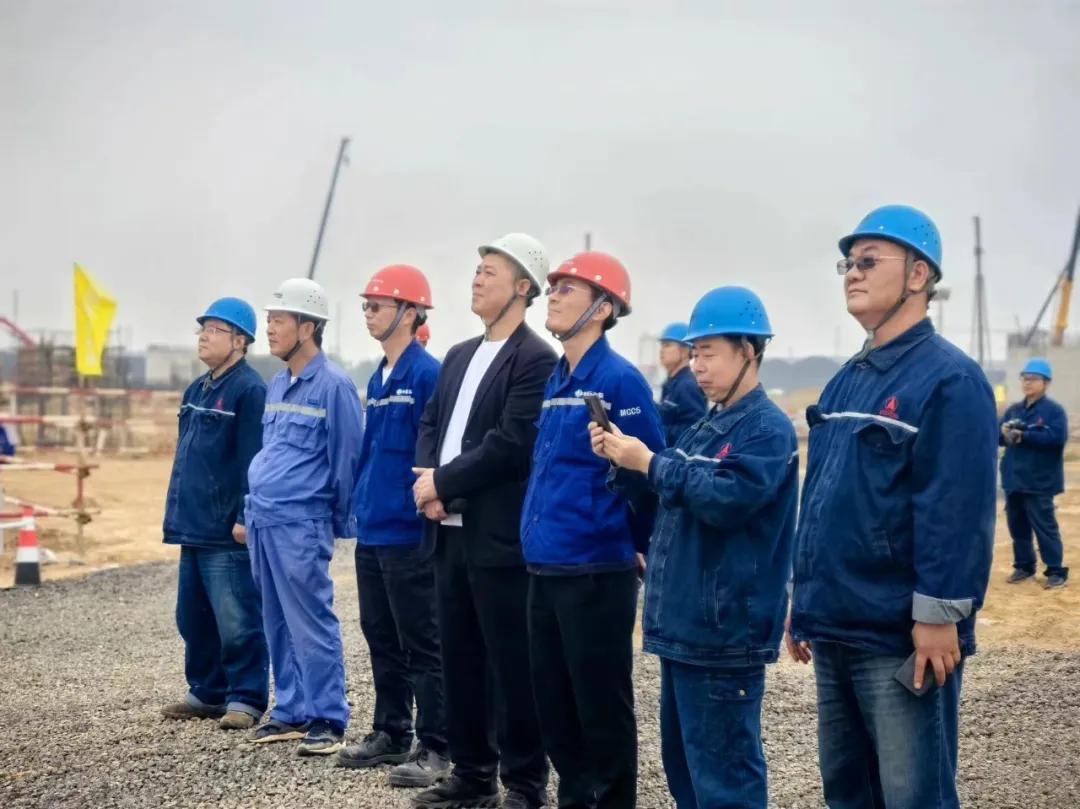 Amid an atmosphere of high spirits and thunderous applause at the construction site, Chairman Zhang Yuming issued the order to commence the hoisting operation. Under the watchful eyes of Vice Presidents Ma Baoliang and Han Qinglian, along with 450 workers from eight construction teams, a towering crane lifted the 30.6-meter steel structure into place, smoothly lowering it into the foundation socket.