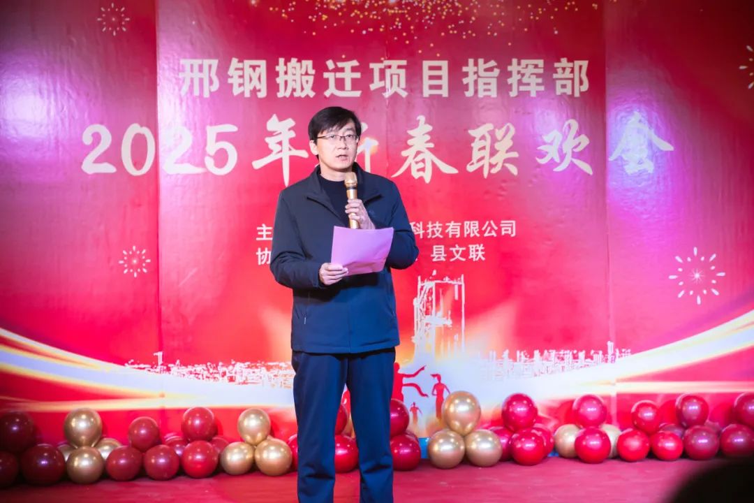 2025年1月18日下午4時,邢鋼搬遷項目指揮部食堂區(qū)域張燈結(jié)彩,氣氛熱烈。邢鋼公司、縣委縣政府及政府部門、縣搬辦及五冶等施工單位、邢鋼參建職工代表、邢鋼公司先進項目部及先進個人等歡聚一堂,齊心聚力再加油,迎接新的機遇與挑戰(zhàn),將在公司高質(zhì)量發(fā)展新征程上再譜新篇。