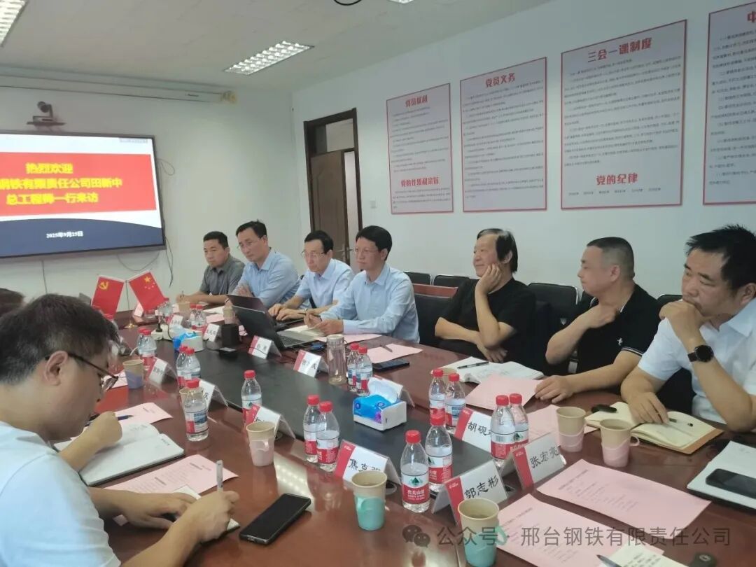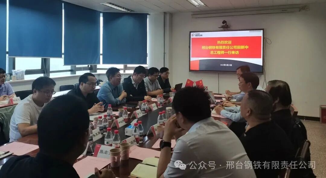 To promote the in-depth integration of industry, university and research, and support product and process upgrading, on the afternoon of September 25th, Tian Xinzhong, Chief Engineer, Assistant to the Chairman and General Manager of Xingtai Iron and Steel Co., Ltd. (hereinafter referred to as "Xingtai Steel"), led a core technical team to Beijing to conduct a special technical exchange with the Central Iron & Steel Research Institute (hereinafter referred to as "CISRI Research Institute")—China's largest comprehensive R&D institution in the metallurgical industry. Experts including Zeng Jiaqing, Deputy Chief Engineer of CISRI Research Institute, Yang Yong, Director of the Metallurgical Process Research Institute, and Ma Dangshen, Deputy Chief Engineer of the Special Steel Institute, attended the exchange activity.