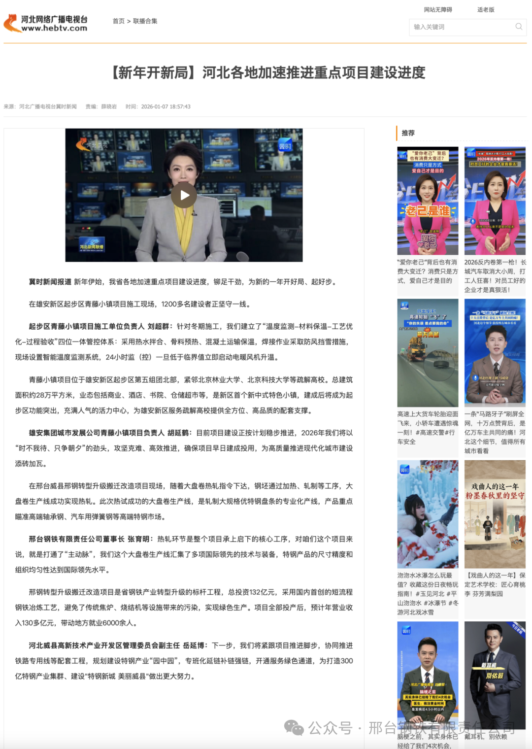邢臺(tái)鋼鐵有限責(zé)任公司董事長(zhǎng) 張育明:熱軋環(huán)節(jié)是整個(gè)項(xiàng)目承上啟下的核心工序,對(duì)咱們這個(gè)項(xiàng)目來說,就是打通了“主動(dòng)脈”,我們這個(gè)大盤卷生產(chǎn)線匯集了多項(xiàng)國(guó)際領(lǐng)先的技術(shù)與裝備,特鋼產(chǎn)品的尺寸精度和組織均勻性達(dá)到國(guó)際領(lǐng)先水平。